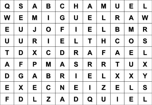 Muchas personas afirman que hay varios arcángeles. Son Jofiel, Miguel, Rafael, Uriel, Zadquiel, Chamuel y Gabriel. Pues bien, en la siguiente sopa de letras podrás encontrar los nombres de estos 7 arcángeles.
